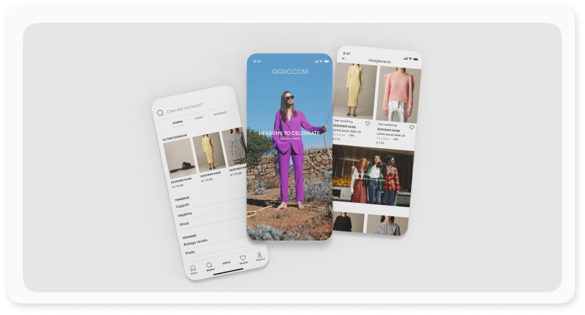 La mobile app di Giglio.com offre un'esperienza di shopping sicura e rilassata a tutti i clienti della storica impresa del Made in Italy. Abbiamo realizzato un'applicazione nativa disponibile sia per dispositivi IOS, sia per dispositivi Android, che assicura agli utenti una navigazione fluida e performante.